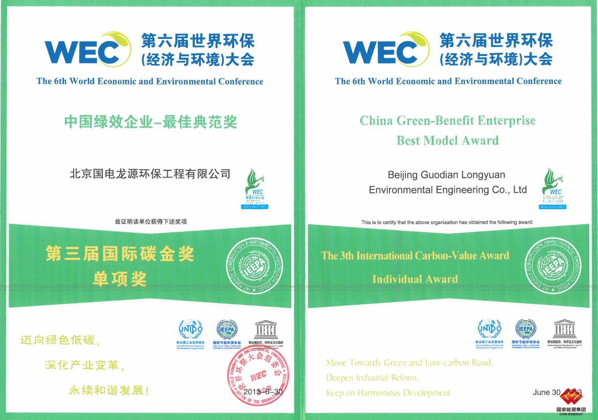 中国绿效企业-最佳典范奖