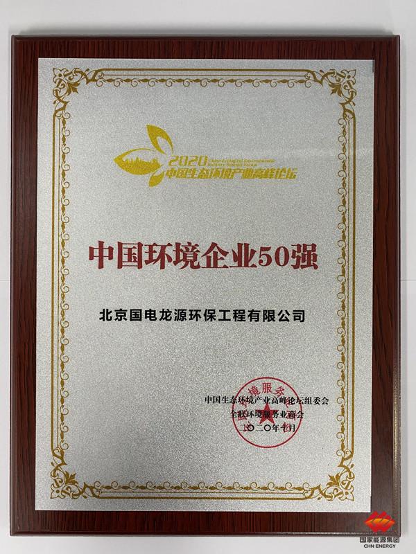 11月10日获悉,龙源环保凭借着卓越的综合实力和优异的业绩表现,入选2020中国环境企业50强榜单。