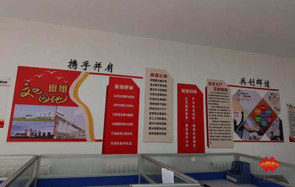 布连分公司结合龙源环保VI手册,集思广益、博采众长,为生产区域及班组设计了布连分公司的文化墙。“亮剑精神、大事记、公司简介、会议室背景墙、职工书屋、荣誉墙、班组园地”等主题突出,内容丰富。布连分公司还对生产区域、检修班组、运行班组的基础设施等进行了美化改造,改善了工作环境、丰富了文化内容,明确布连分公司各岗位人员工作职责和安全制度要求,为进一步提升“龙源运维”企业形象打下坚实的基础。